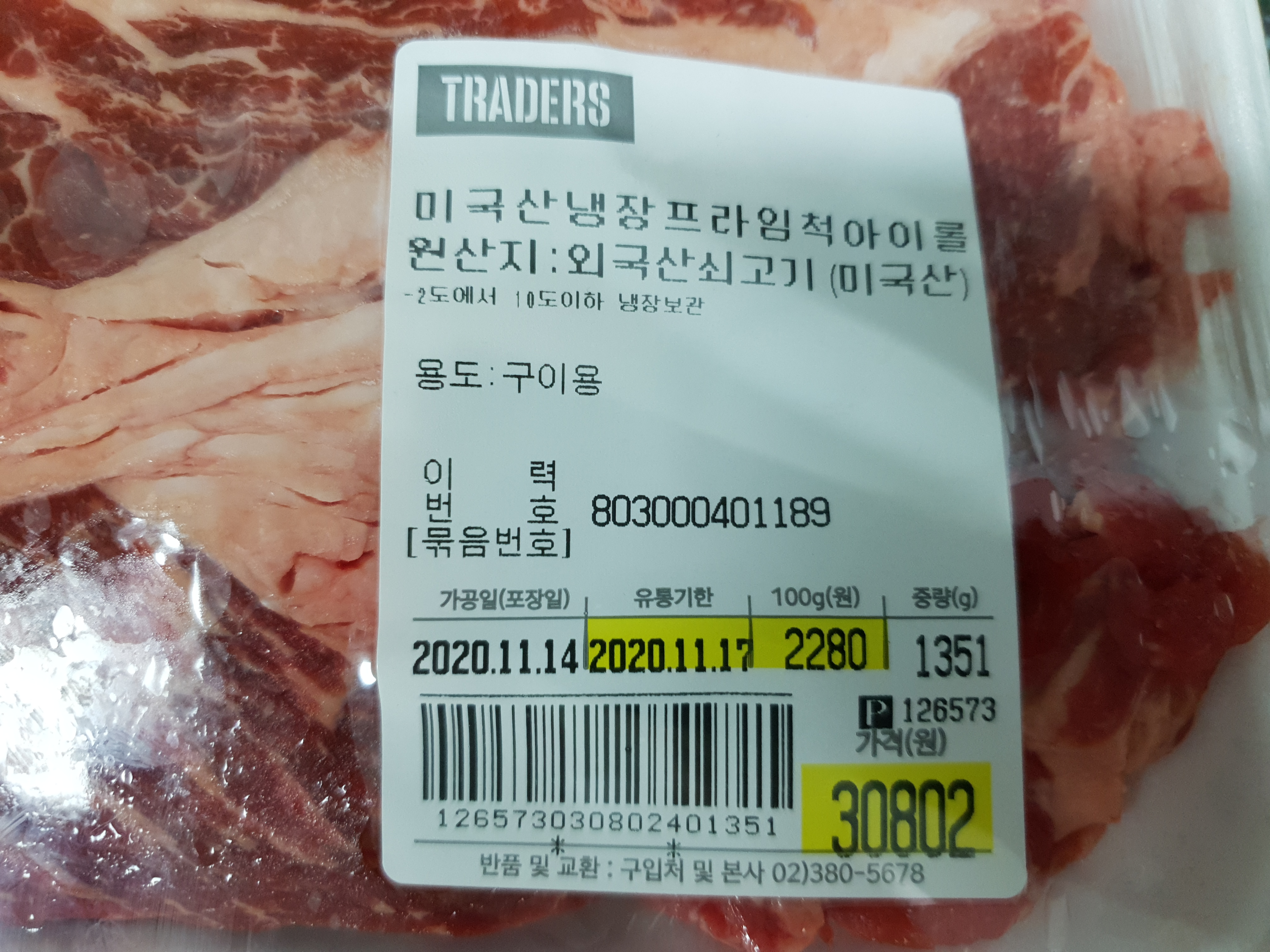 지난번에 방문한 이마트 트레이더스 군포점에서 미국산 냉장 소고기인 프라임 척 아이롤을 구매하였습니다.
