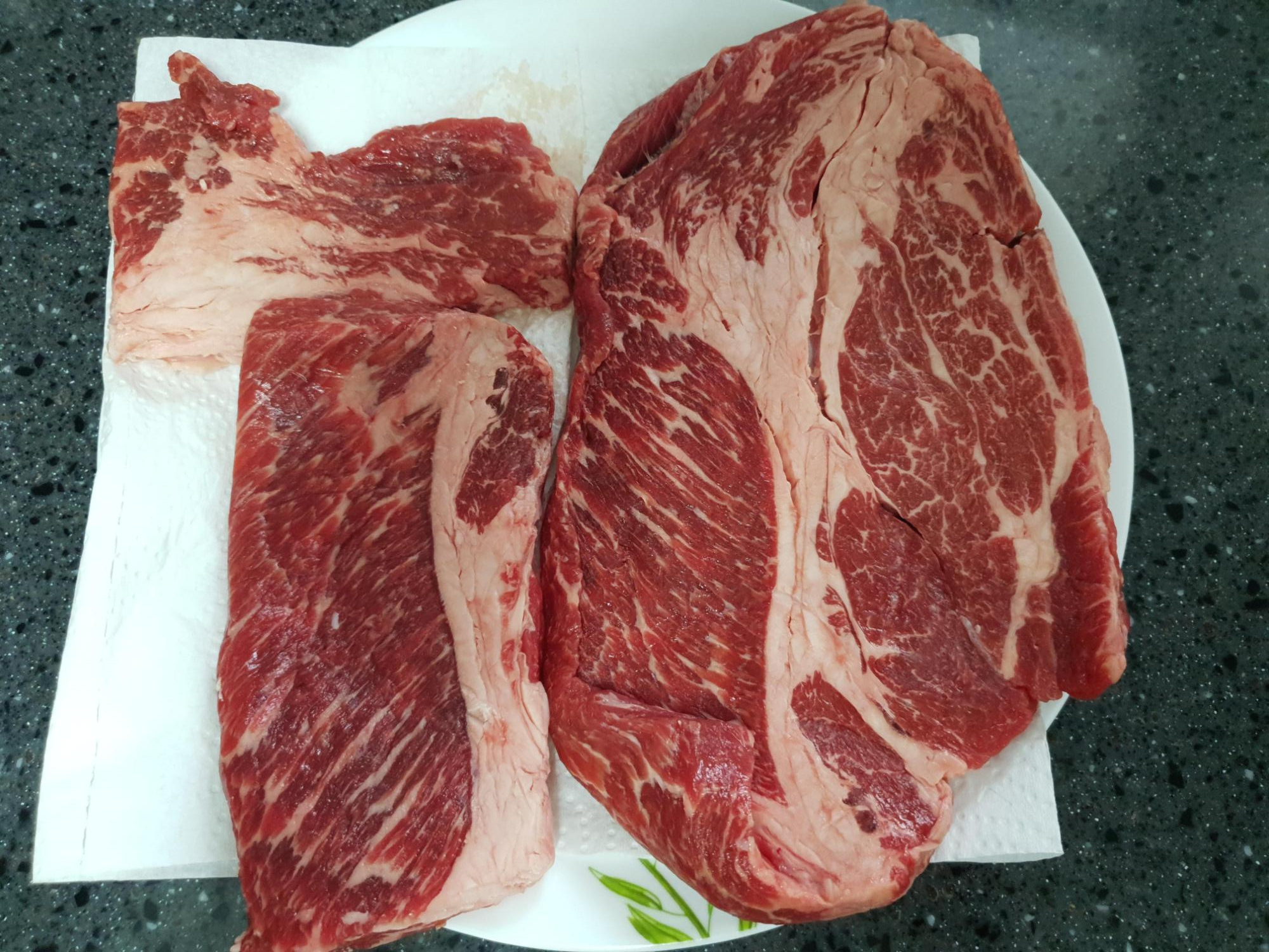 매번 한우만 먹다가 오랜만에 먹은 미국산 냉장 소고기인 프라임 척 아이롤은 기대에 미치지 못했습니다.