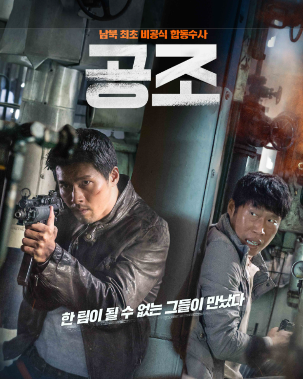 공조는 2017년 1월 18일에 개봉한 영화로 남한과 북한의 공조 수사에 대한 내용을 담고 있습니다. 북한 내부에서 위조 지폐를 탈취한 북한 조직의 리더가 남한으로 몰래 잠입함으로써 벌어지는 수사극입니다. 극중 현빈은 내부 조직에 의해 아내와 동료들을 잃고 조직의 리더를 잡기 위해 남한에 파견되는 북한형사역을 맡고 있습니다.