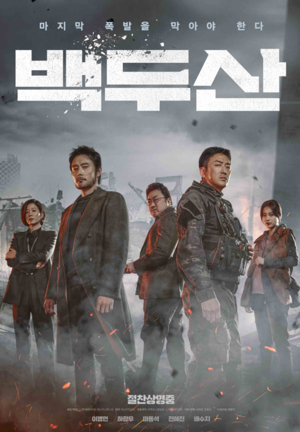 영화의 간단 줄거리는 한반도 역사상 최대 규모의 백두산 폭발이 발생하여 북한은 초토화가 되고 남한 또한 아비규환 상태가 됩니다. 역대 최악의 재난을 막기 위해 지질학 교수 역의 마동성과 특전사 대위 역의 하정우가 비밀작전에 투입됩니다. 이러한 작전의 중요한 키 역할을 하는 북한 무력부 소속의 이병헌과의 접선으로 백두산의 추가 폭발을 막으려는 숨막히는 작전이 펼쳐지면서 진행되는 영화입니다.