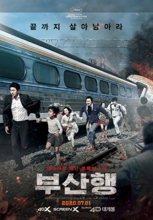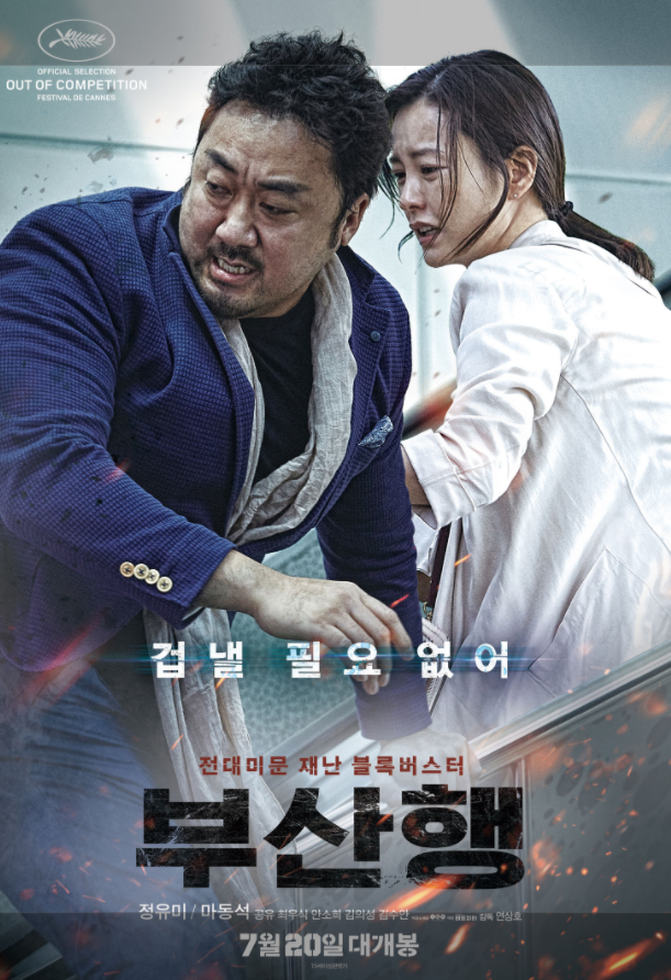 부산행은 1000만 관객을 동원한 재난영화입니다. 정체불명의 바이러스가 전국으로 확산되어 벌어지는 대한민국의 긴급상황을 보여주는 영화로 좀비영화물로는 큰 성공을 거두었습니다.