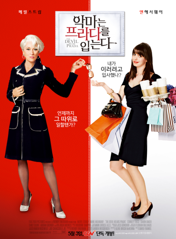 영화는 주인공 앤 해서웨이가 최고의 패션 매거진 '런웨이'에 입사하면서 벌어지는 삶을 다루고 있습니다. 원래 이루고 싶었던 꿈인 저널리스트가 되고 싶었지만 화려한 세계속에서 점점 멀어지는 꿈과 현실 사이에서 고민하는 주인공의 고뇌를 엿볼 수 있는 작품입니다. 까칠한 편집장 역의 메릴 스트립과 앤 해서웨이의 시너지가 영화를 한층 더 재미있게 만드는 요소가 아닐까 합니다.