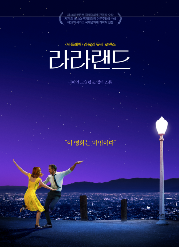 때론 꿈을 향해 달려가지만 사랑과 꿈 앞에서 갈등하는 주인공들의 고뇌와 라라랜드가 가진 의미를 다시 생각해 보게 해주는 영화라는 생각이듭니다.