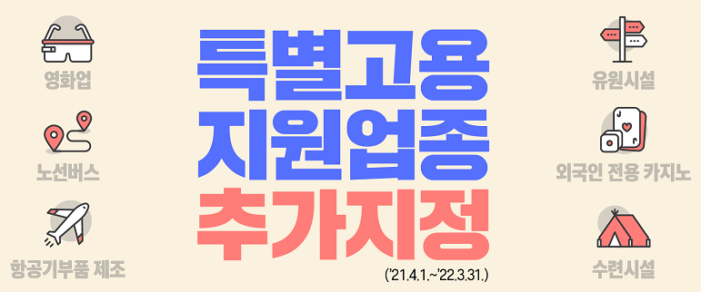 고용노동부는 3월 17일에 특별고용지원업종 추가지원에 대한 내용을 심의하고 의결하였습니다. 포함되는 업종은 카지노, 유원시설, 수련시설, 항공기 부품업, 노선버스, 영화업 등이며 4월부터 22년 3월 31일 까지 무려 1년 동안 지정이 됩니다. 이러한 지원 제도의 자세한 사항은 다음과 같습니다.