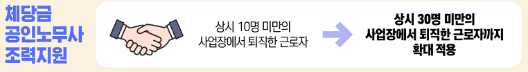 국민취업 지원제도는 중위소득 100% 이하면 참여가 가능하였으나, 특별고용지원 업종 실업자 소득요건이 면제되었습니다. 체당금 공인노무사 조력지원을 받을 수 있는 기준도 10명 미만의 사업장에서 퇴직한 근로자에서 30명 미만으로 확대 적용되었습니다. 근로자 생활안정자금융자 내용은 다음과 같습니다.