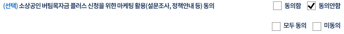 소상공인 버팀목자금 플러스 신청하기를 누르시면 위와 같은 화면이 나타납니다. 소상공인 버팀목자금 플러스 처리 유의사항 확인 등의 필수 사항을 모두 동의함으로 체크하시고, 소상공인 버팀목자금 플러스 마케팅 활용은 동의안함을 체크하시고 확인을 눌러주세요.