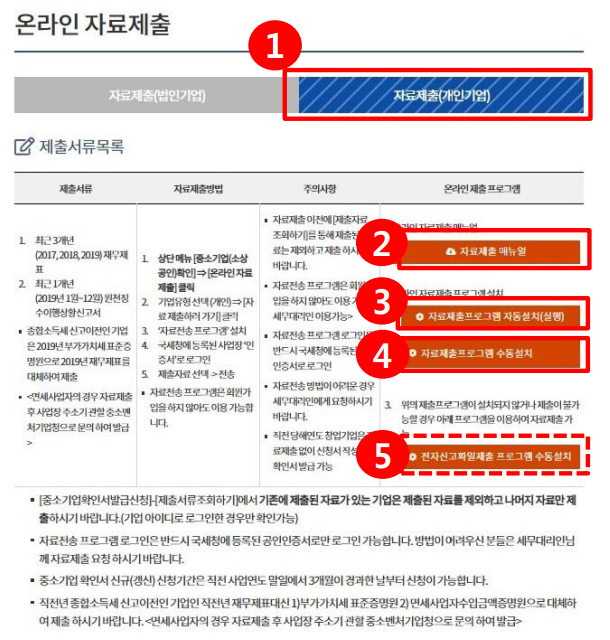 중소기업 확인서 중 개인기업의 필수자료를 따라서 확인을 해 주세요.