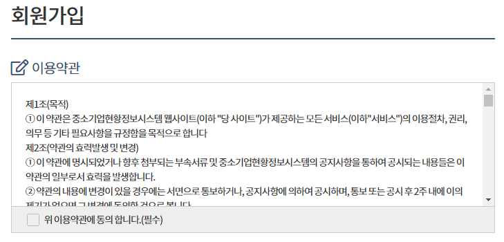 중소기업현황정보 시스템 회원가입을 우선적으로 합니다.