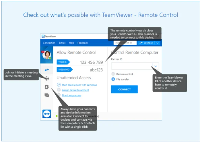 팀뷰어는 원격으로 일하기가 가능하며, 사용자의 통제 내에서 원격 IT 인프라 관리가 가능합니다. TeamViewer의 가장 큰 장점은 모든 사물에 대한 원격 지원과 연결입니다. 이러한 팀뷰어의 장점으로 장소에 상관없이 사물을 스마트하게 관리하는 것이 가능합니다.