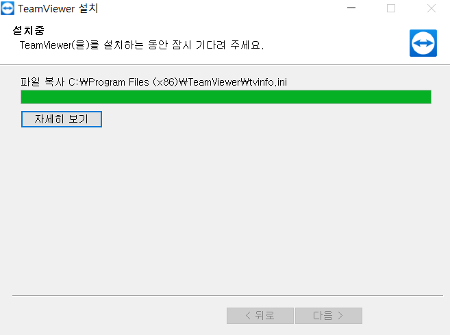 TeamViewer 설치중 동안 잠시 기다려주시고, 다음을 눌러주세요.