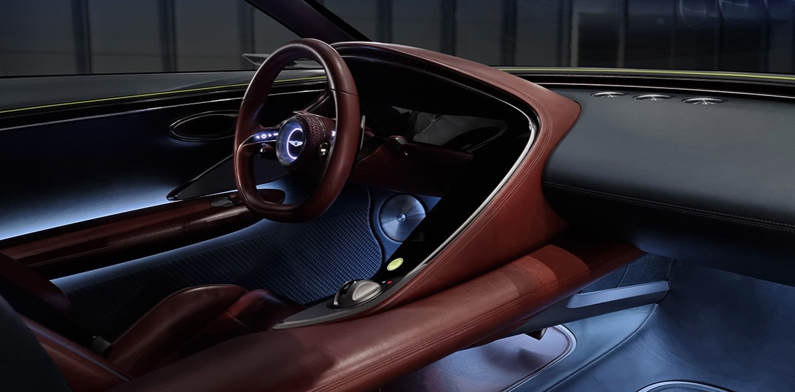 이번 제네시스 엑스 전기차의 콘셉트인 두 줄의 강조는 내부와 외부의 통일감을 중요시하였으며, 실내의 조작계와 디스플레이가 운전자를 감싸는 느낌을 만드는 칵핏을 적용하여 한국 특유의 여백의 미를 강조하였습니다. 또한, 운전자 중심의 설계적 디자인으로 훌륭한 승차감에 이바지하였습니다.