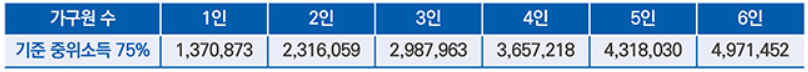- 한시 생계지원금 지원대상은 가구의 기준 중위소득의 75%로 가구원 수에 따라 달라짐