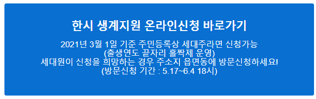 한시 생계지원금 신청 홈페이지 바로가기