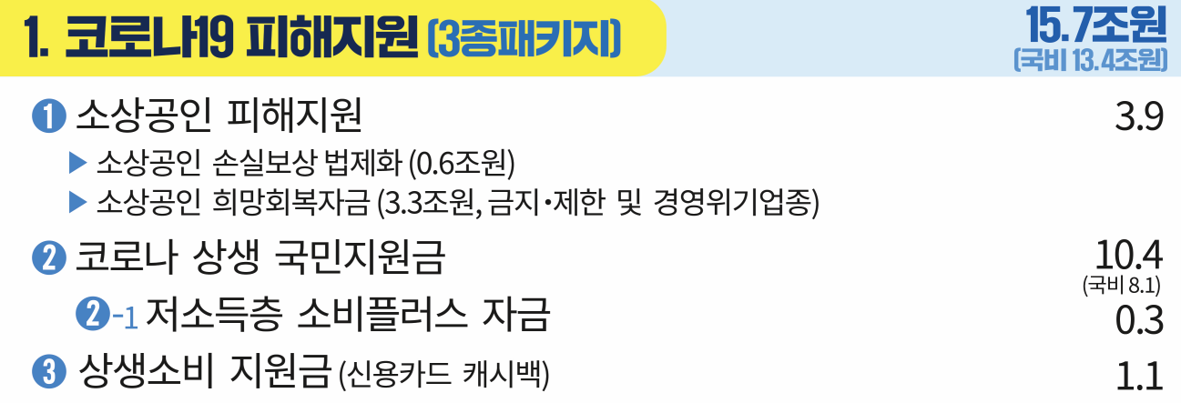 5차 재난지원금의 일환으로 정부는 제2차 추가경정예산안을 편성하였습니다. 상생소비지원금을 통한 신용카드 캐시백은 코로나19 피해지원 3종 패키지에 포함되는 내용으로 총 15.7조원의 예산이 편성되었습니다. 코로나19로 침체된 소비를 되살리기 위해 상생소비지원금 신용카드 캐시백이 어느정도 실효성이 있을 거라는 희망을 가지고 있습니다.