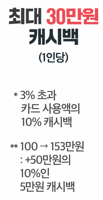 상생소비지원금은 신용카드 캐시백으로 1인당 최대 30만원이 지급되며, 월별 10만원이 한도입니다.